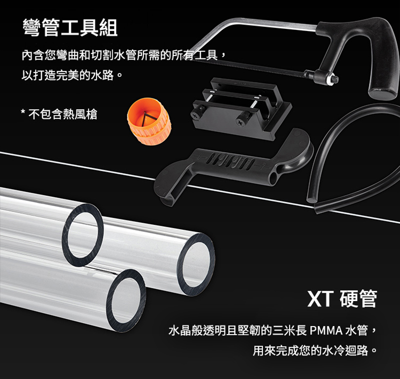 3、此套件提供打造專屬硬管(hardline)水冷系統所需的所有核心元件