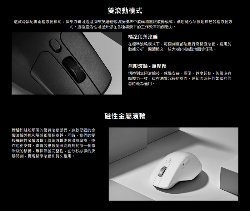 8、雙滾動模式,標準觸覺滾輪,無限滾輪-無摩擦