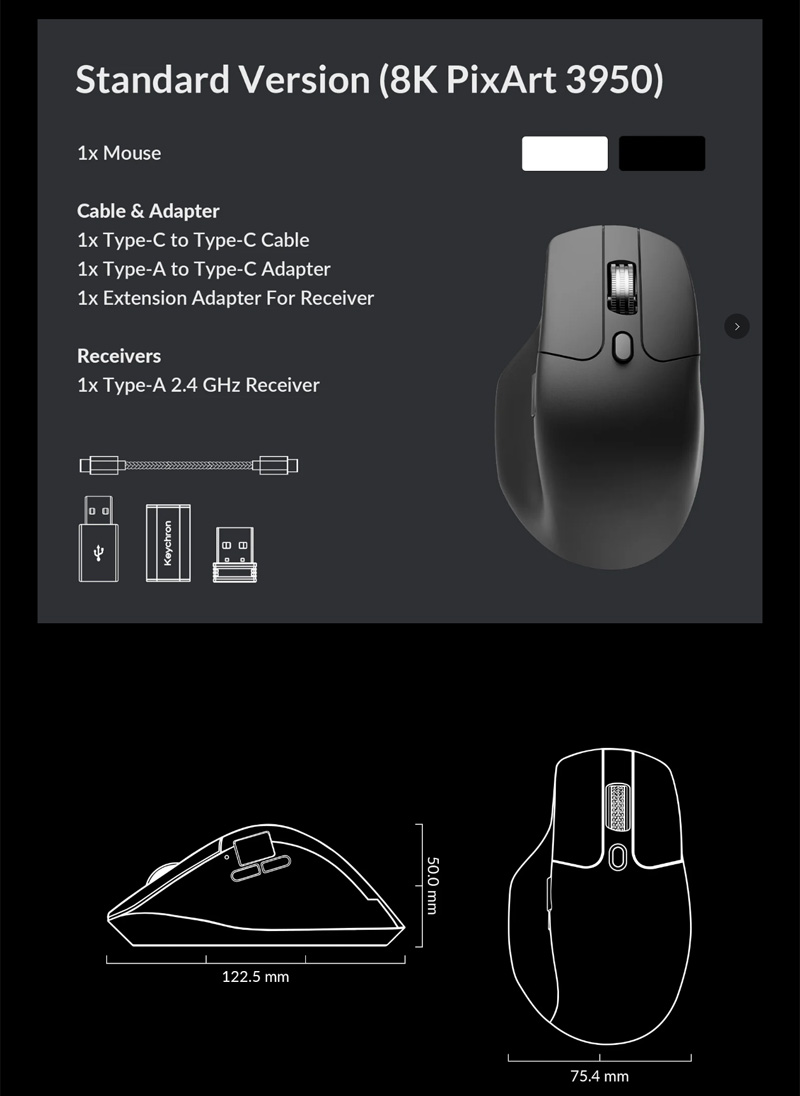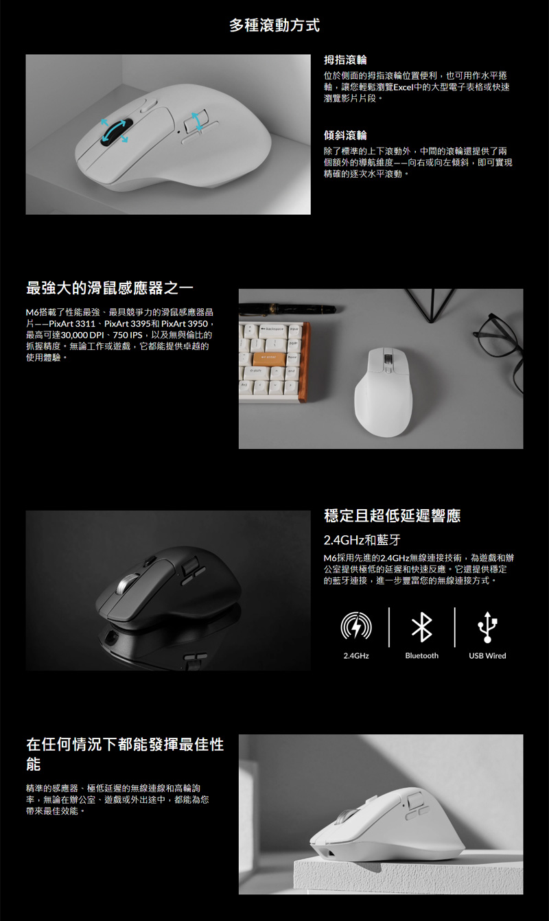 Keychron M6 8K 無線三模滑鼠 黑色白色