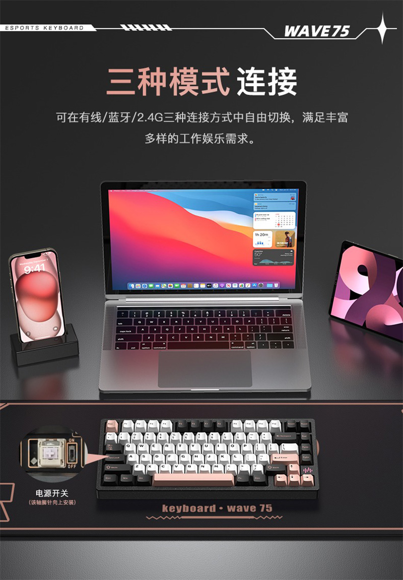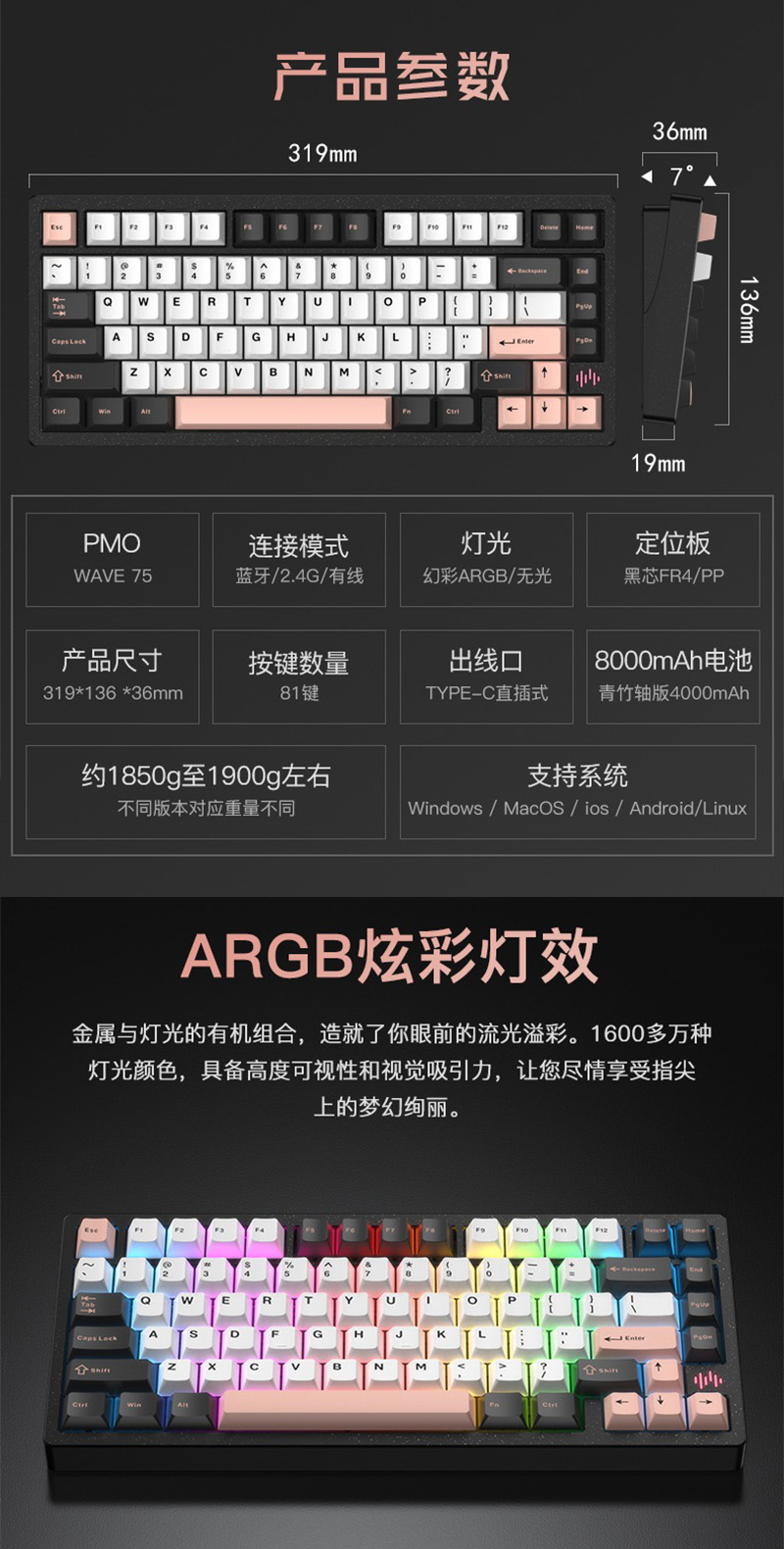 | 品名: | PMO Wave75 三模熱插拔機械式鍵盤 |