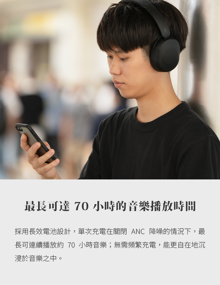 7、單次充電可實現最長70小時(關閉降噪模式)的音樂播放合
