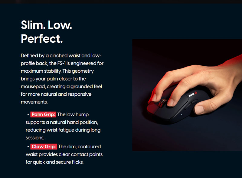 由 Pulsar 和 VAXEE 共同開發的 FS-1 滑鼠,以穩定性為競技遊戲的標準。它汲取了賽事經驗的精華,其精益求精之處並非追求立竿見影的效果,而是力求在長期使用中保持可預測且可控的性能。 FS-1 並不是試圖定義遊戲的玩法,而是默默地為競技遊戲樹立了一個可靠的標竿。