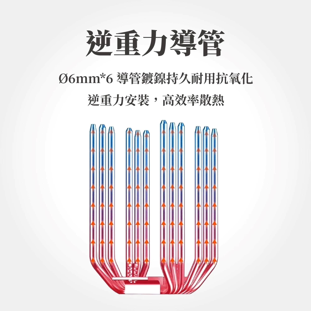 4、逆重力導管,Ø6mm*6 導管鍍鎳持久耐用抗氧化,逆重力安裝,高效率散熱
