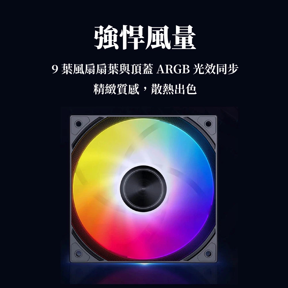 3、9葉風扇扇葉與頂蓋 ARGB 光效同步,精緻質感,散熱出色