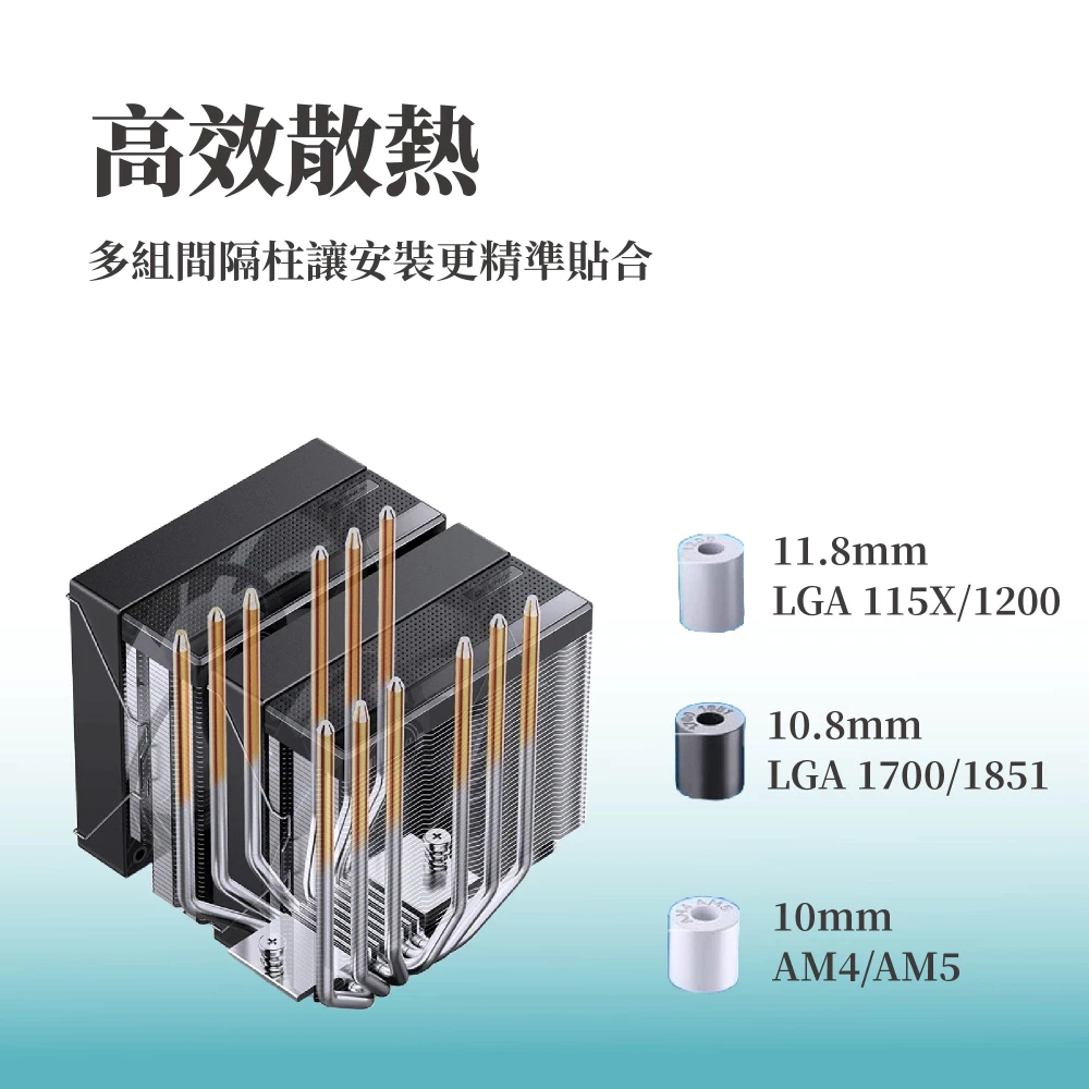 6、內附扣具,針對不同款式 LGA 1200/1851/AMD,提供了 3 種尺寸的間隔柱,帶來更準確的扣具壓力值