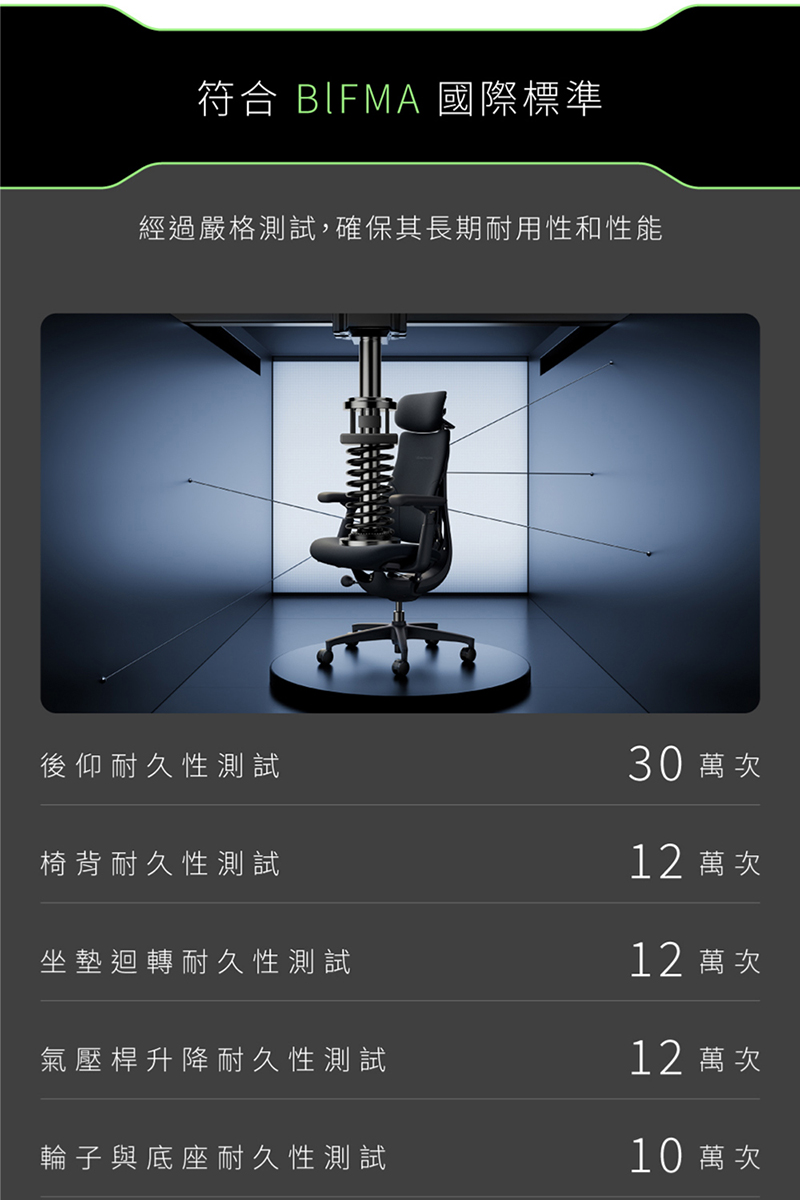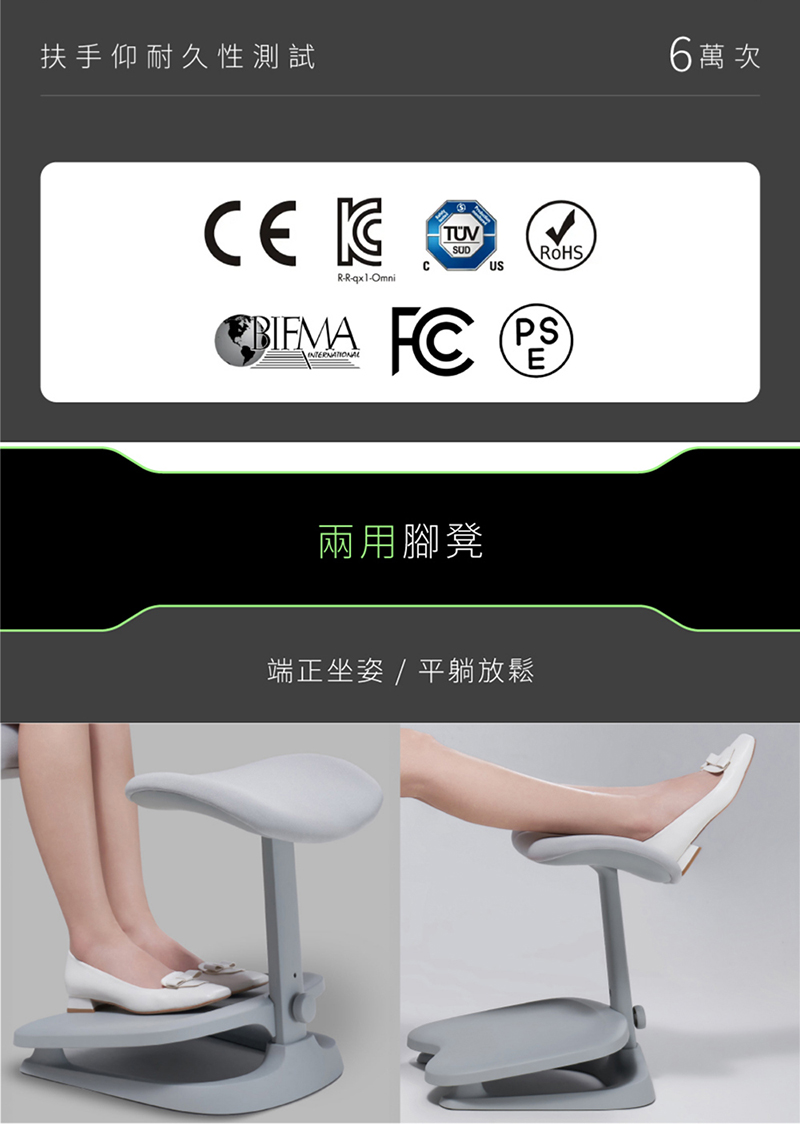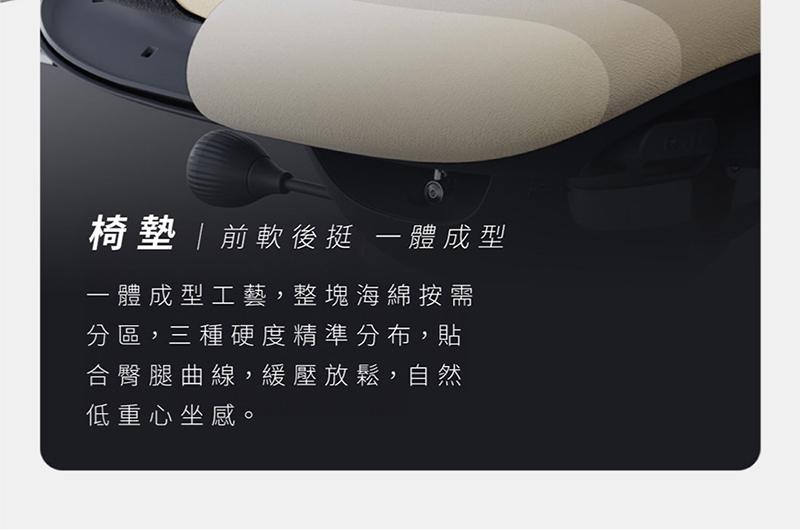 | 材質: | 頸枕:親膚記憶綿 椅背:親膚聚酯纖維+高密度彈力棉+航太級座椅材料 椅墊:前軟後挺一體成型 三層異材質綿 扶手:發泡海綿 |