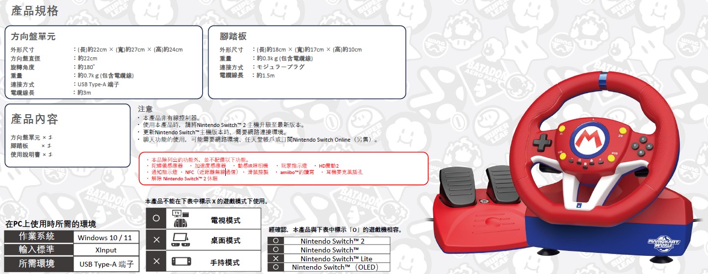 | 品名: | HORI 瑪利歐賽車方向盤Pro Mini for Switch 2 |