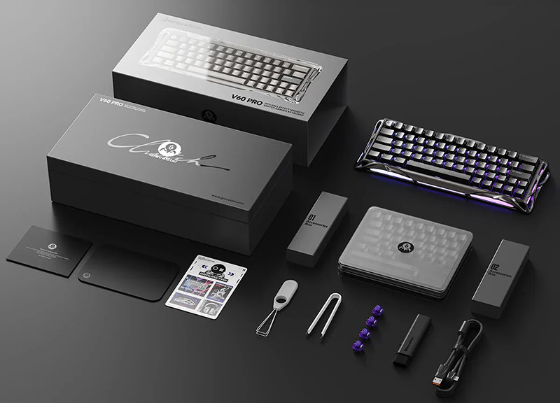 | 包裝內容物: | Mercury V60 Pro x1 金屬質感 PBT 鍵帽組合 x1 霧透 PC 鍵帽組合 x1 品牌卡片 x1 說明書 x1 清潔布 x1 品牌貼紙 x1 拔軸器 x1 拔鍵器 x1 UFO 線性軸 x4 Type-A 轉 Type-C連接線 x1 清潔刷 x1 |