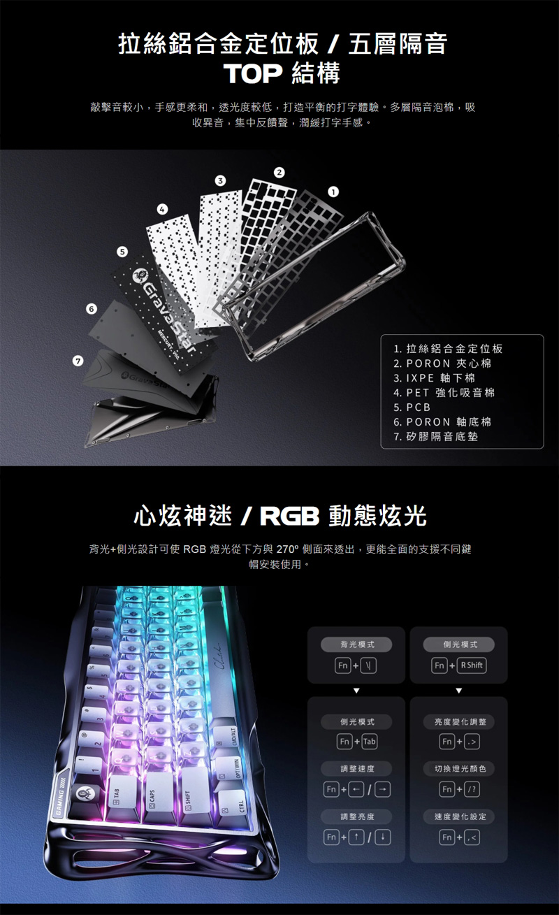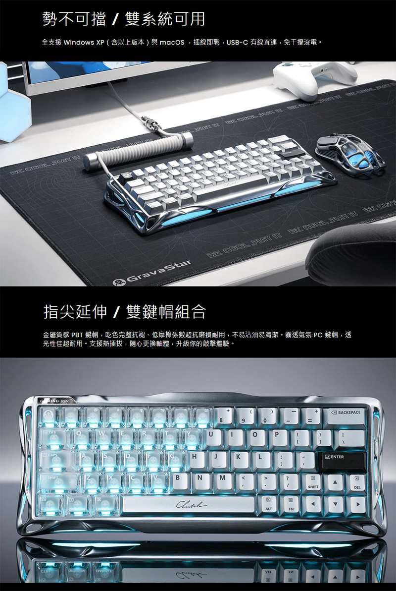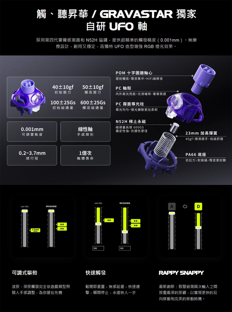 | 軸體: | GravaStar獨家自研UFO線性磁軸 |
