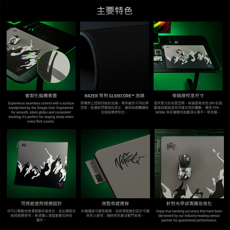 | 材質: | 編織表面 防滑底部 RAZER 專利 GLIDECORE 泡綿 |
