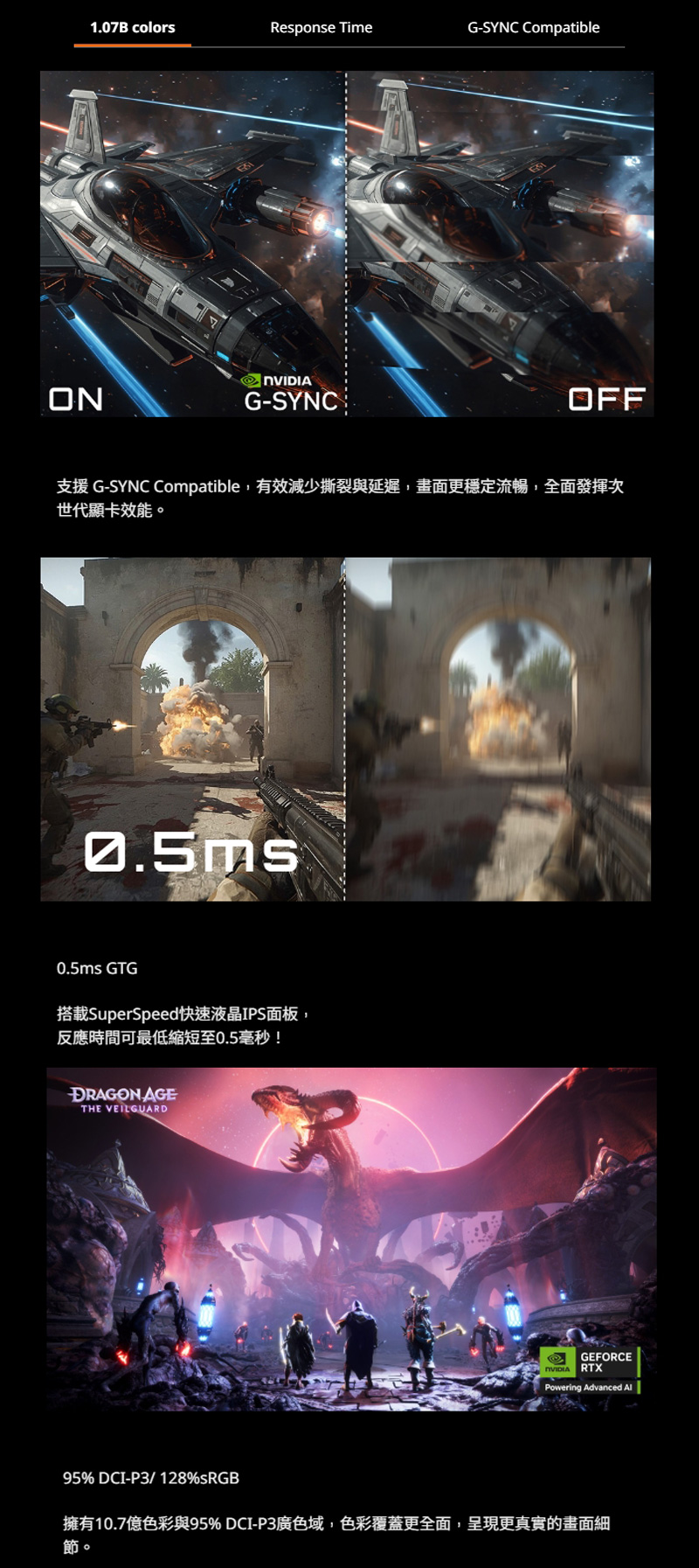 9、0.5ms (GTG),搭載SuperSpeed快速液晶IPS面板