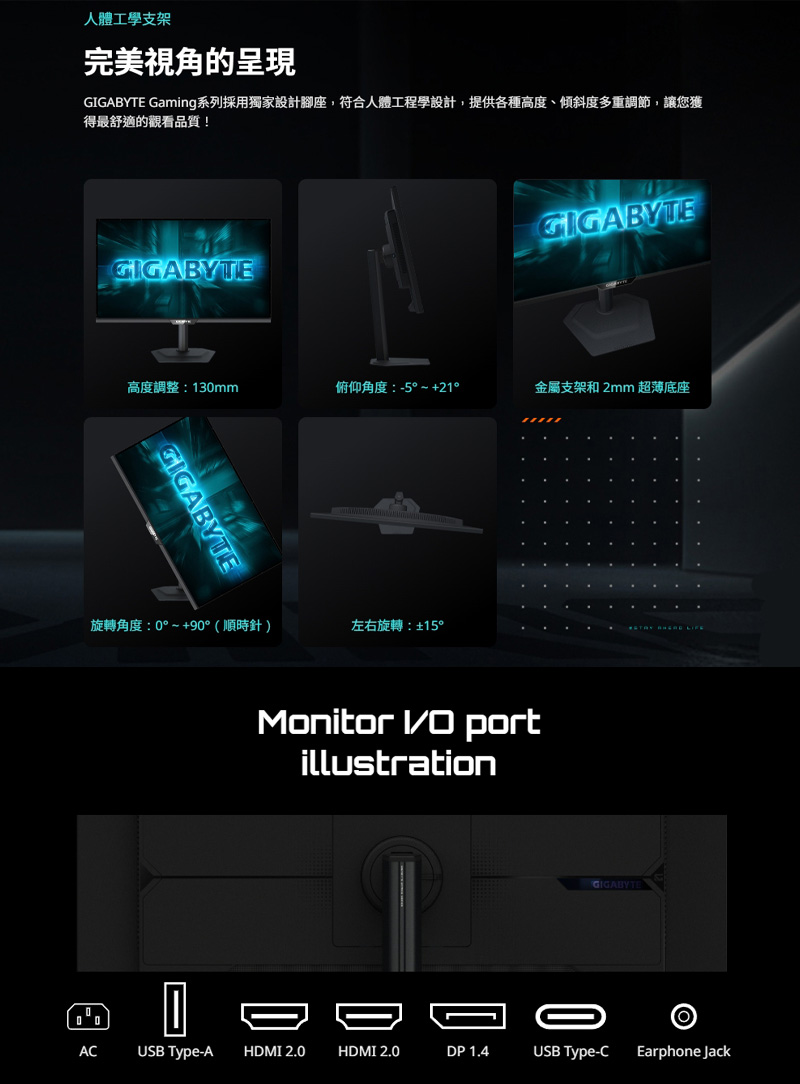 10、GIGABYTE Gaming系列採用獨家設計腳座,符合人體工程學設計