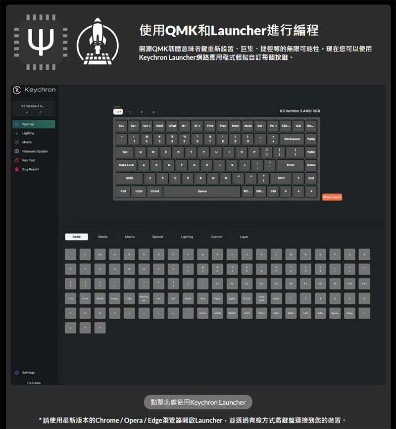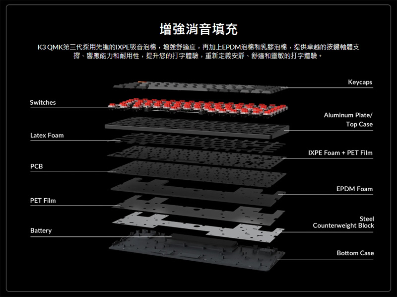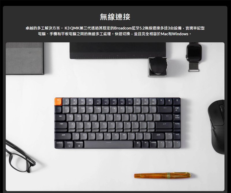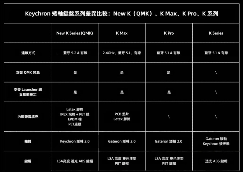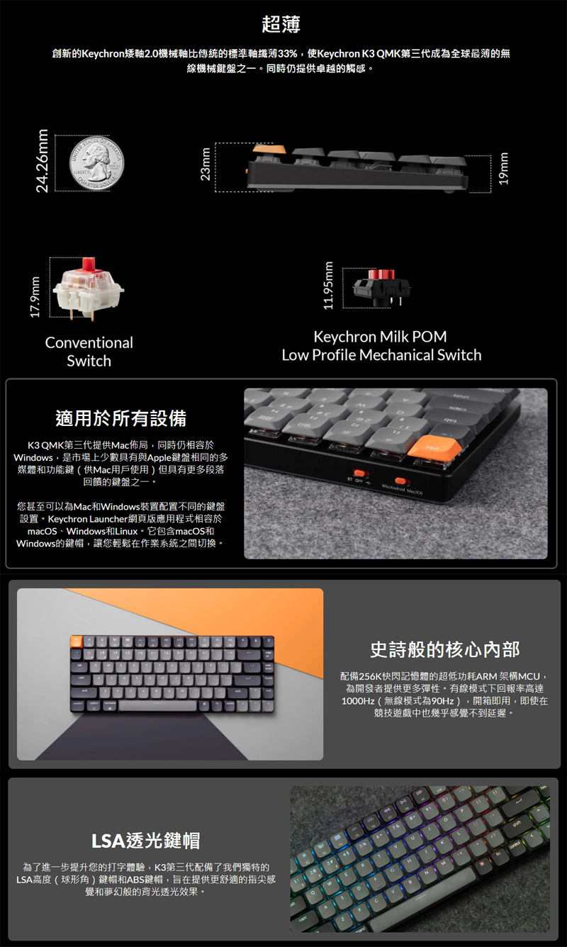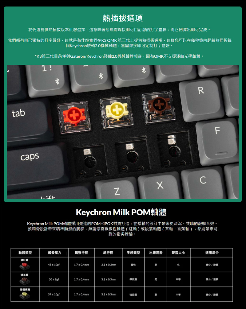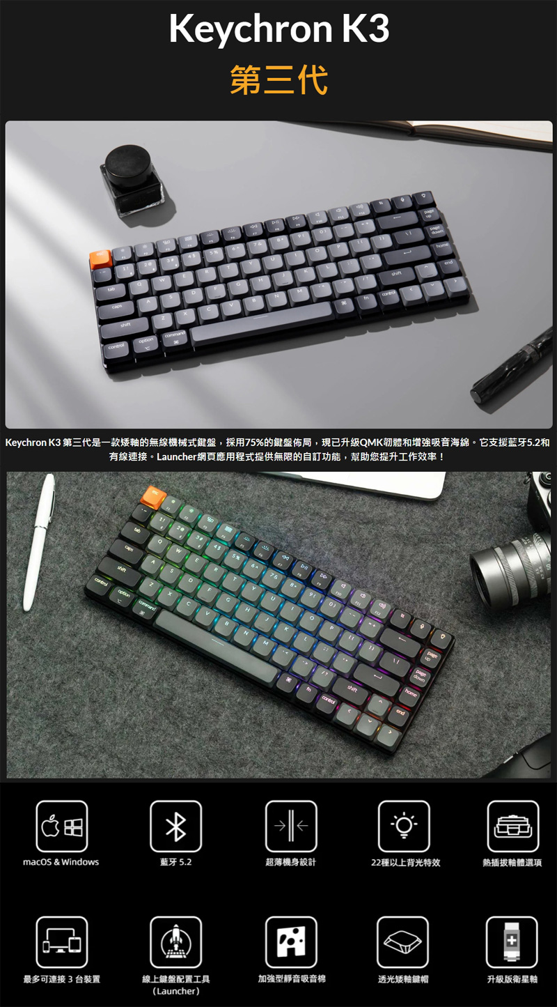 ※K3 第三代目前僅與Keychron矮軸機械軸體相容,因為QMK不支援矮軸光學軸體。