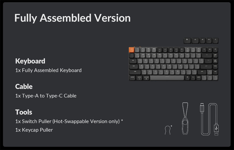 | 熱插拔適用軸體: | K3 第三代目前僅與Keychron矮軸機械軸體相容,因為QMK不支援矮軸光學軸體。 |