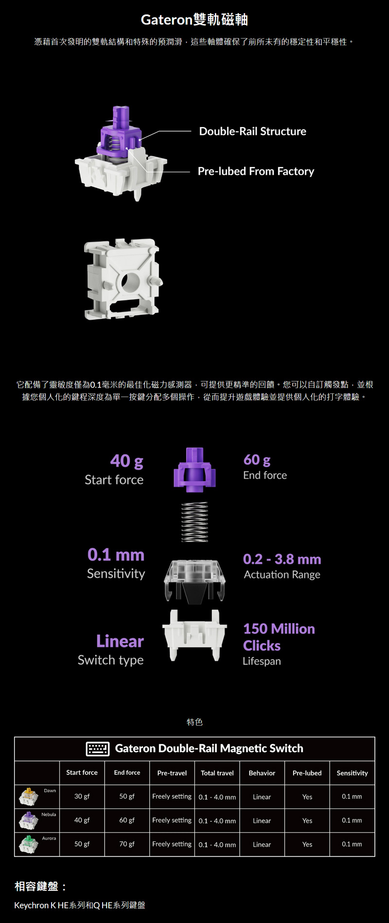 相容鍵盤:Keychron K HE系列和Q HE鍵盤。
