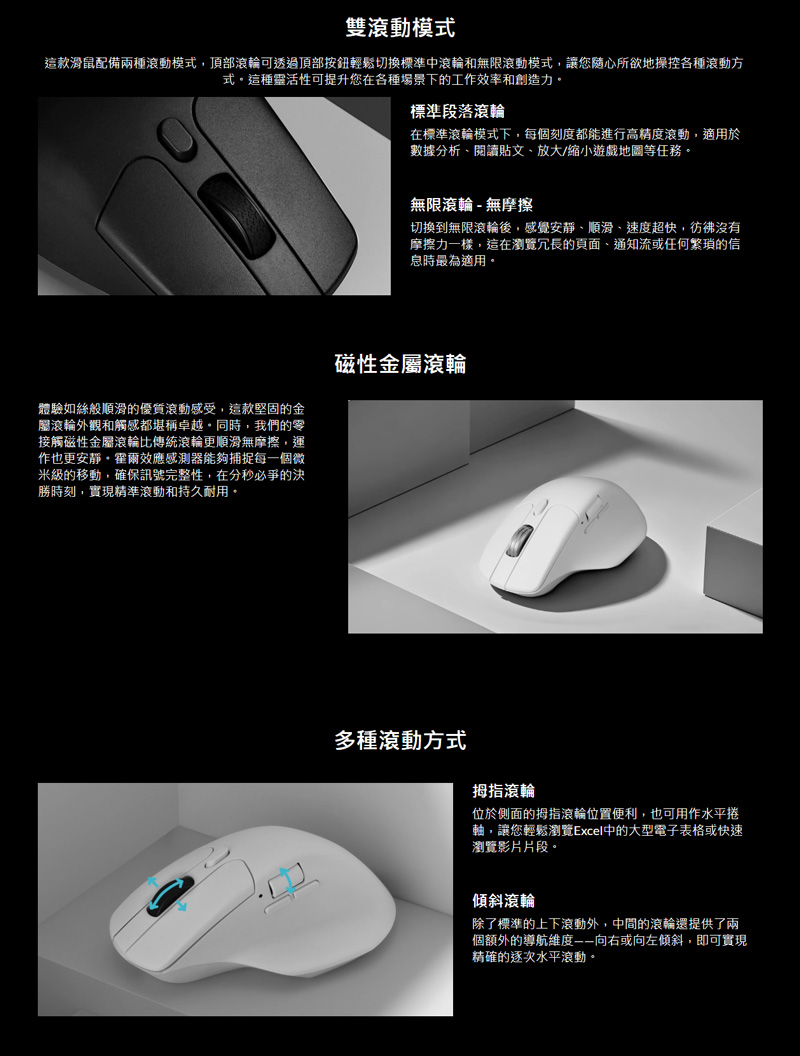 6、多種滾動方式,拇指滾輪,傾斜滾輪