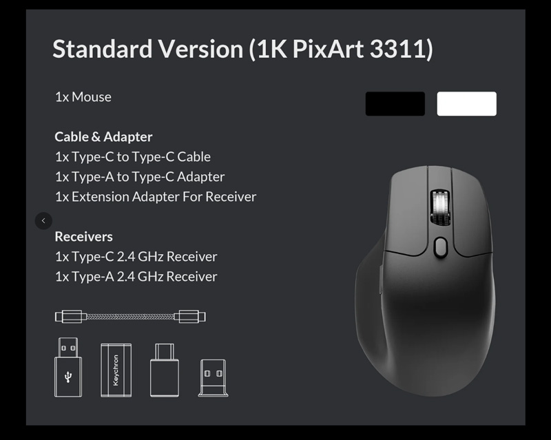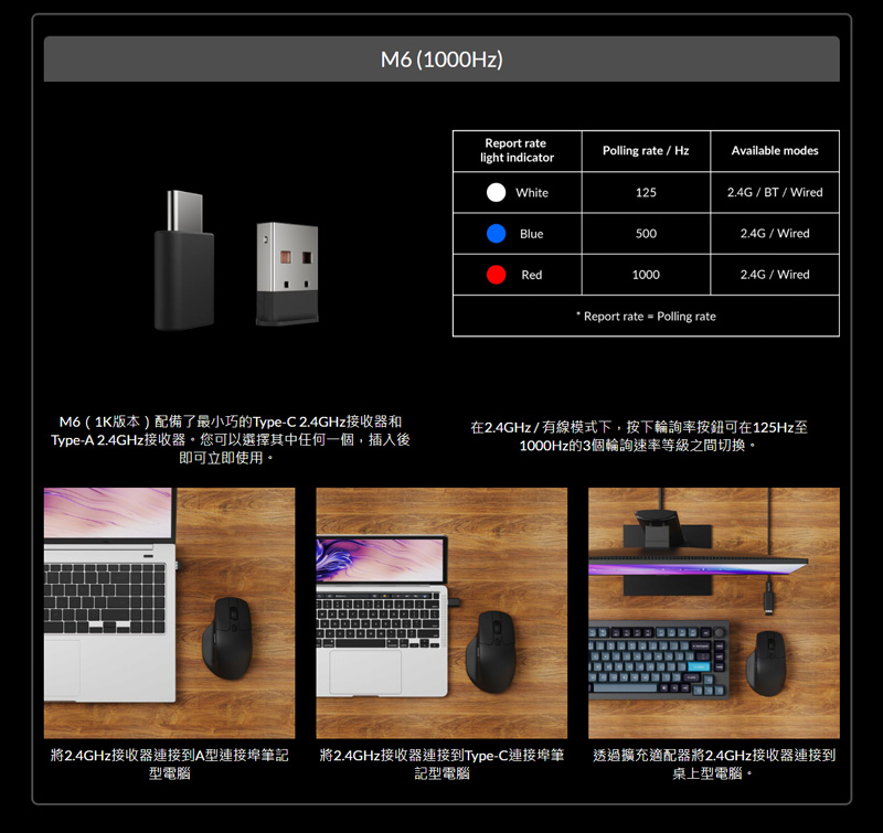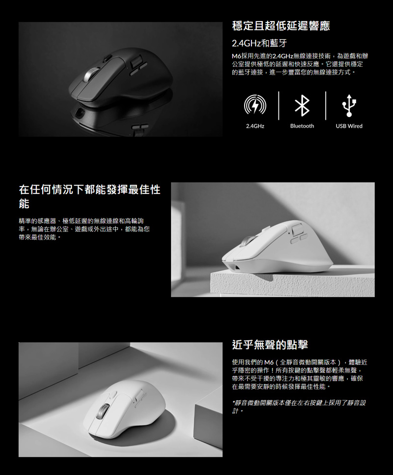 Keychron M6 1K 無線三模滑鼠 黑色白色