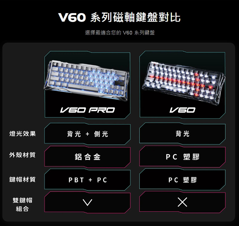 GravaStar Mercury V60 磁軸鍵盤 有線 英文 黑耀瑪瑙/水晶玫瑰 UFO磁軸