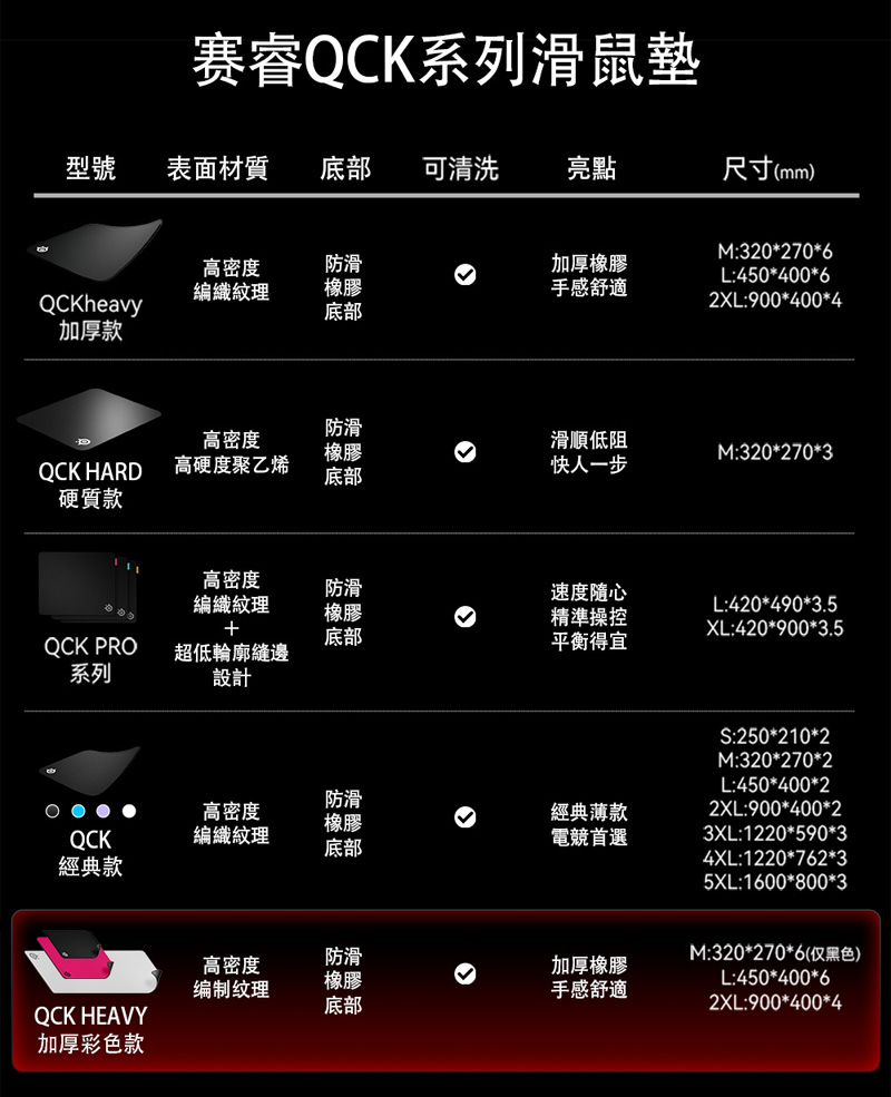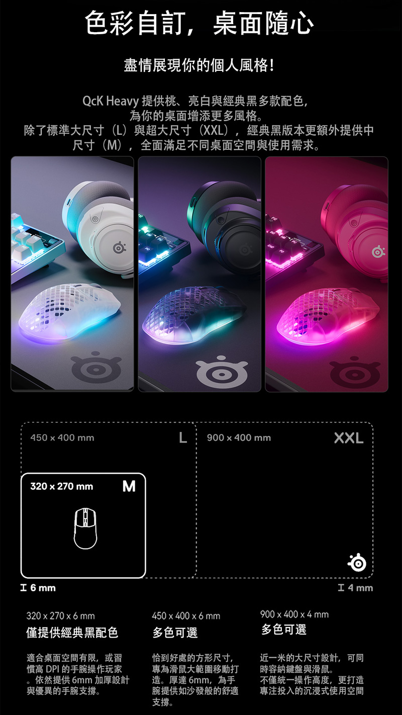 SteelSeries QcK Heavy 布質鼠墊 中M / 大L / 寬XXL 黑色/霧澈白/耀澈桃