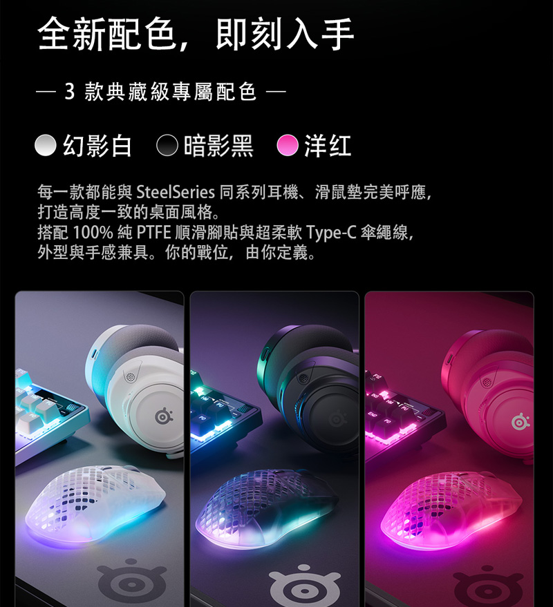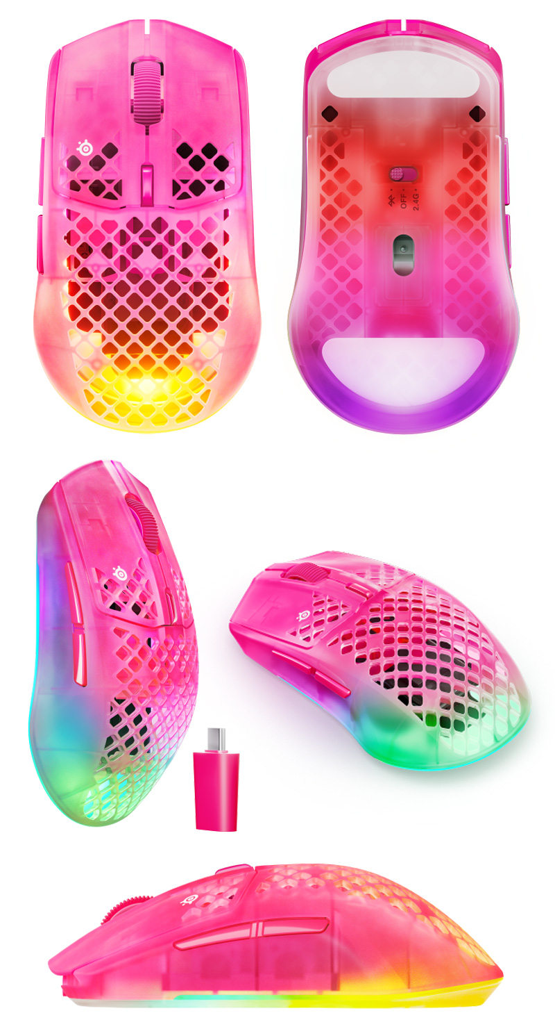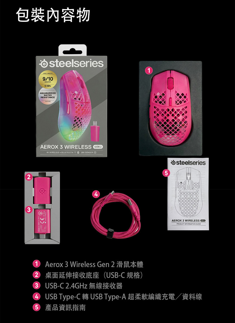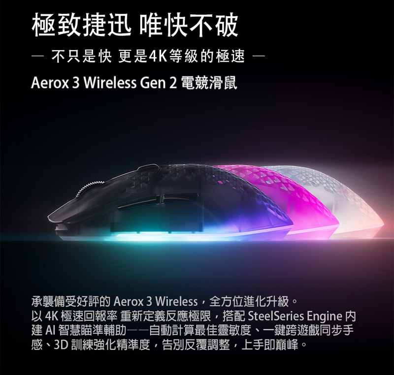 SteelSeries Aerox 3 Gen 2 Wireless RGB光學滑鼠 黑色白色桃紅色