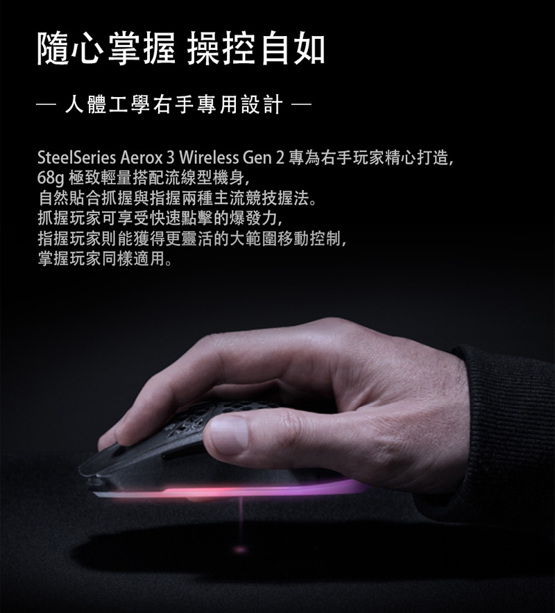 | 品名: | SteelSeries Aerox 3 Gen 2 Wireless RGB光學滑鼠 |