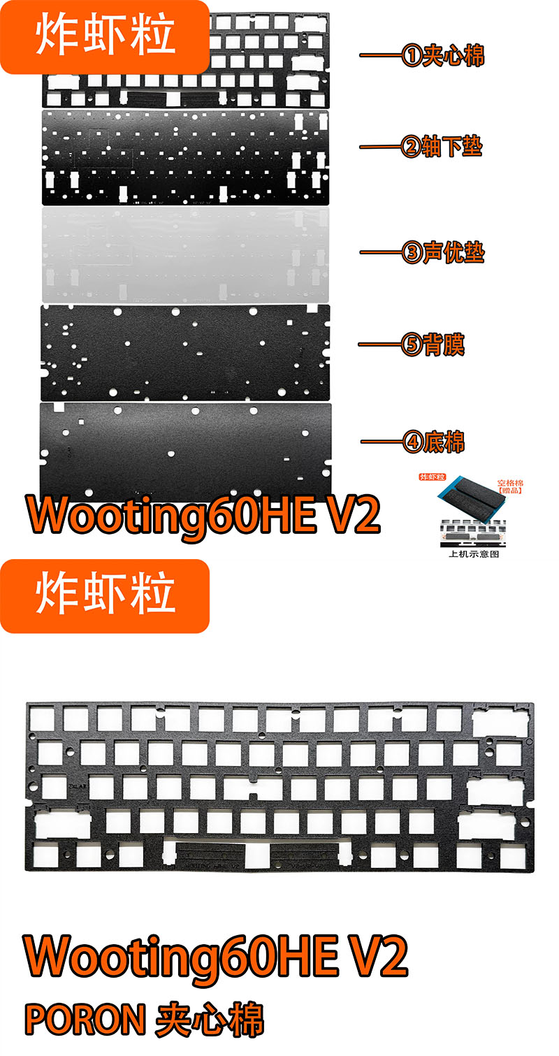 炸蝦粒 Wooting 60HE V2 專用改裝 靜音棉組