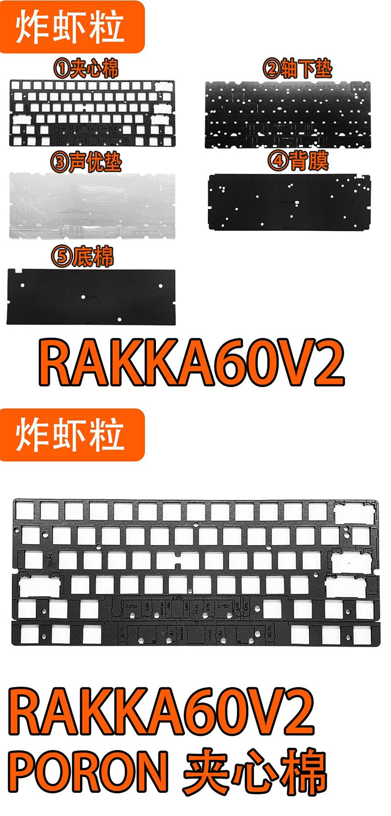 炸蝦粒 RAKKA 60 V2 專用改裝 靜音棉組