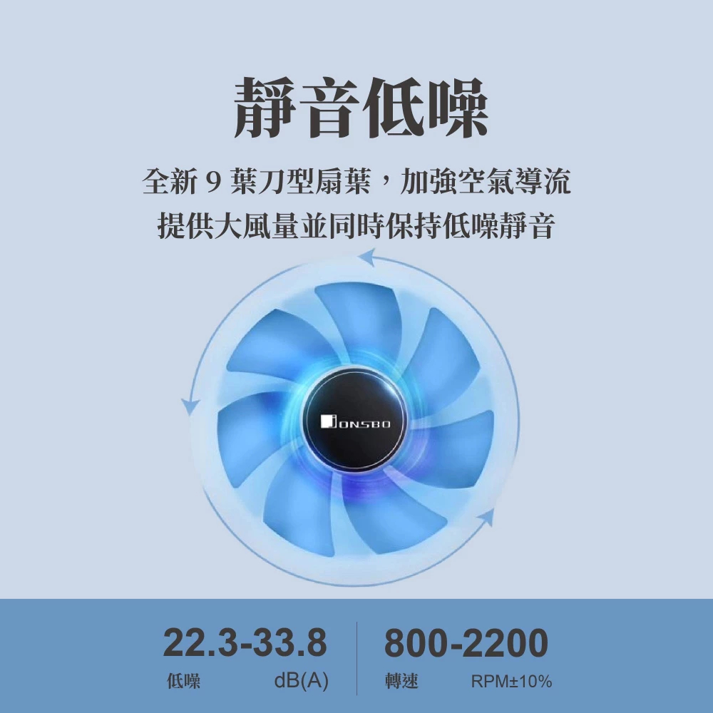 5、全新9葉刀型扇葉,加強空氣導流,兼具大風量與低噪靜音
