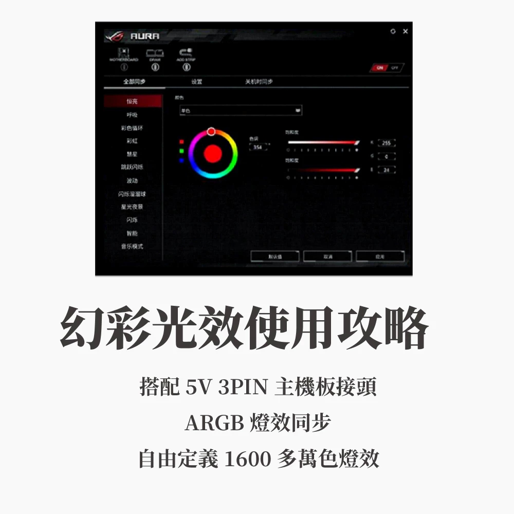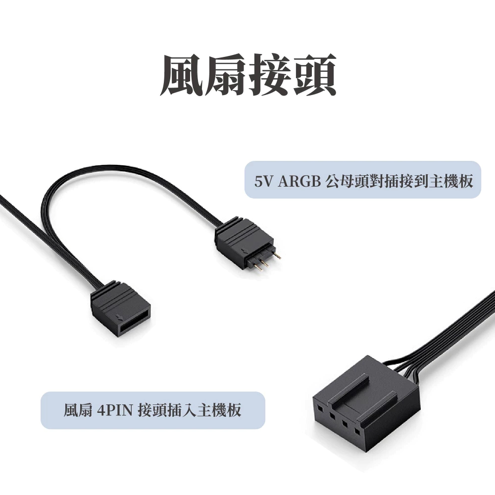 6、搭配5V 3PIN主機板接頭,ARGB燈效同步,自由定義1600多萬色燈效