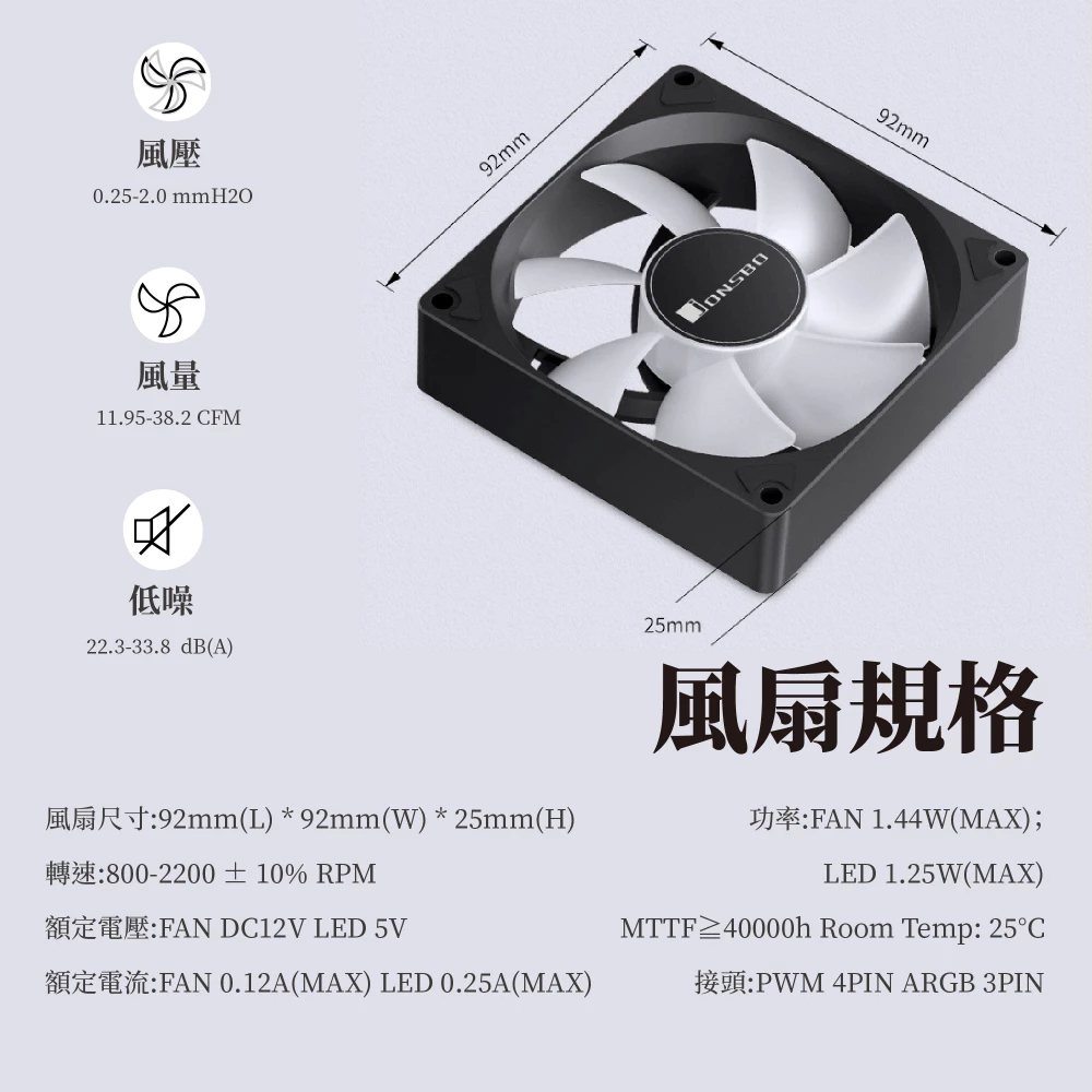 | 品名: | JONSBO 喬思伯 SL925 ARGB Gen1 9公分風扇 |
