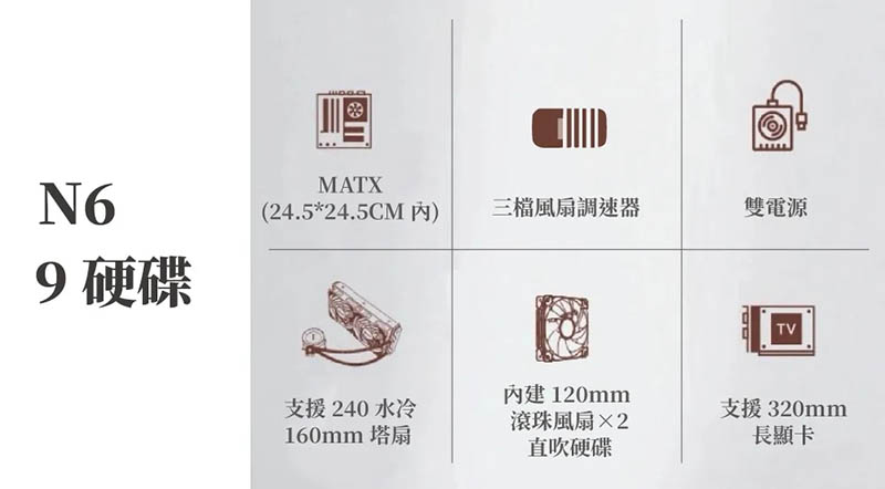 JONSBO 喬思伯 N6 NAS 9硬碟位機殼 黑色 MATX支援雙電源