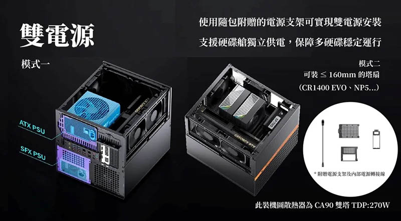 | 電源供應器長度: | ATX≤220mm / SFX ≤100mm(支援雙電源模式) |
