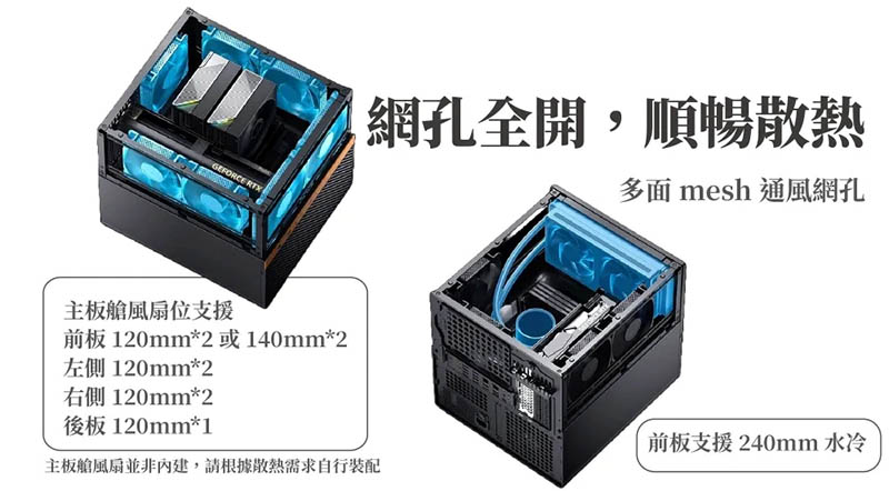 4、網孔全開,順暢散熱,多面 mesh 通風網孔(前板支援 240mm 水冷)