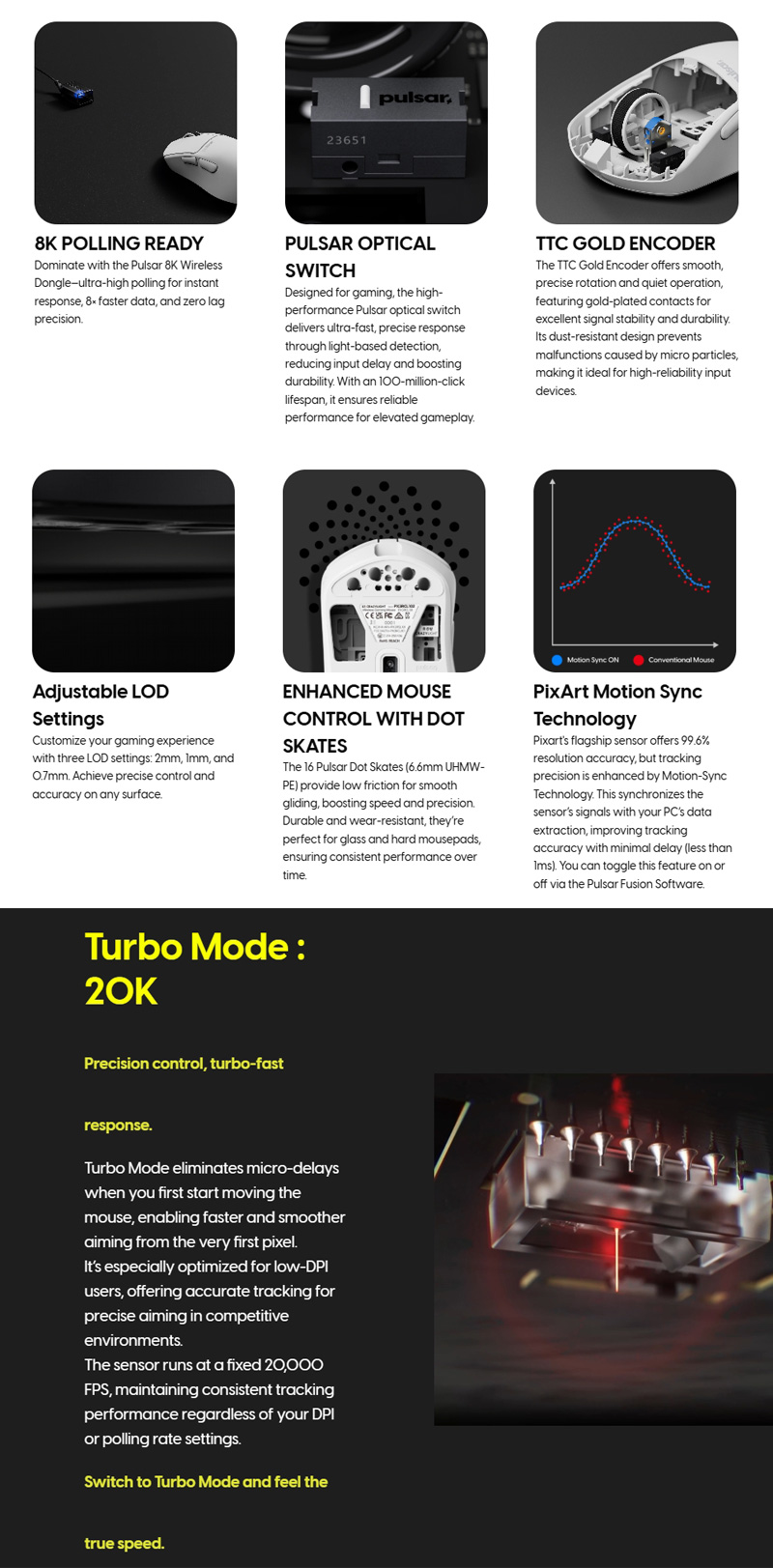 4、Pulsar光學微動開關,具有一億次點擊壽命