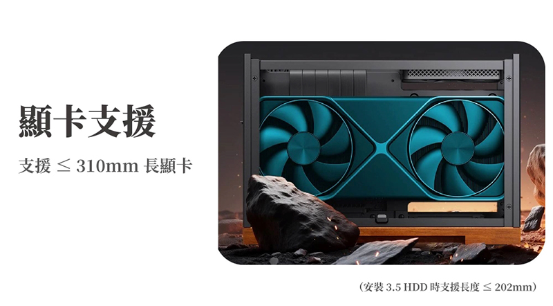 4、支援≤310mm長顯卡(安裝3.5 HDD時支援長度≤202mm)