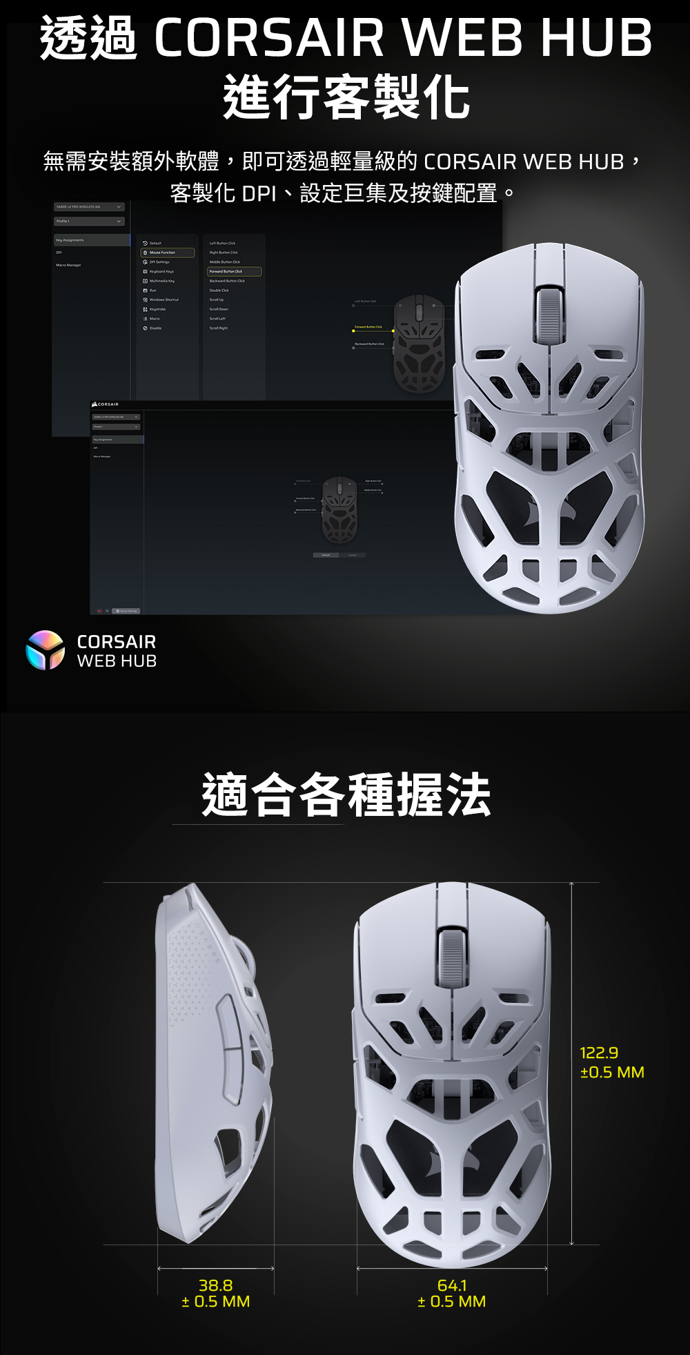 | 回報率: | 1000Hz 8000Hz(需透過CORSAIR Web Hub) |