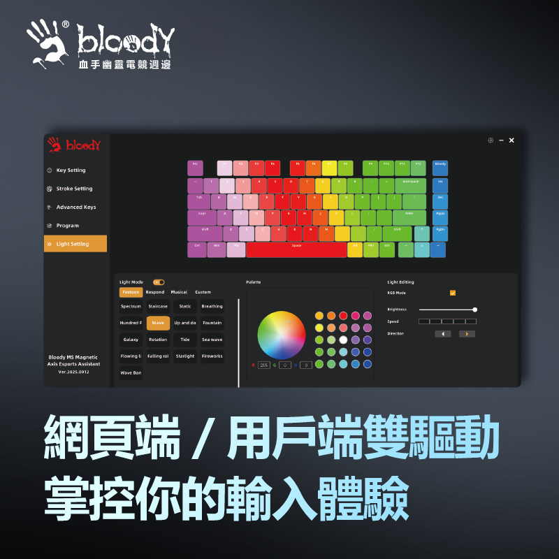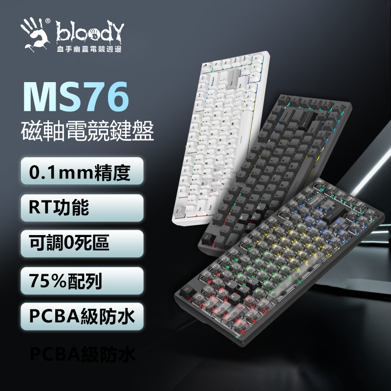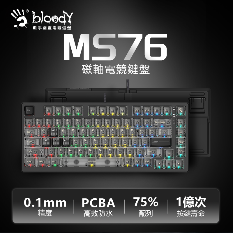 A4tech 雙飛燕 MS76 磁軸電競鍵盤 有線 75% RGB 中文