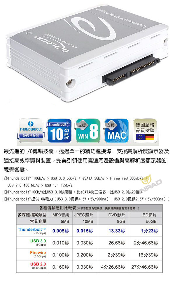 | 品名: | Delock Thunderbolt™ to SATA 硬碟連接器 |