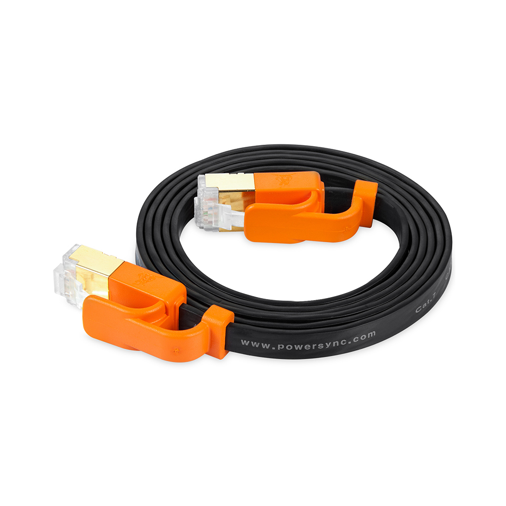 PowerSync CAT.7抗搖擺超高速扁線網路線 黑橘色 白色 1-10M(長度可選)