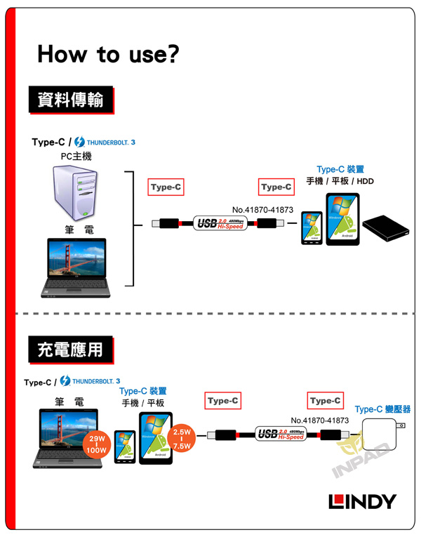 | 品名: | LINDY USB 2.0 Type-C/公 to Type-C/公 傳輸線 |