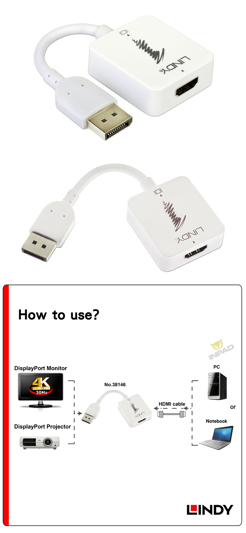 | 品名: | LINDY HDMI 轉 DISPLAYPORT 4K 轉換器 |