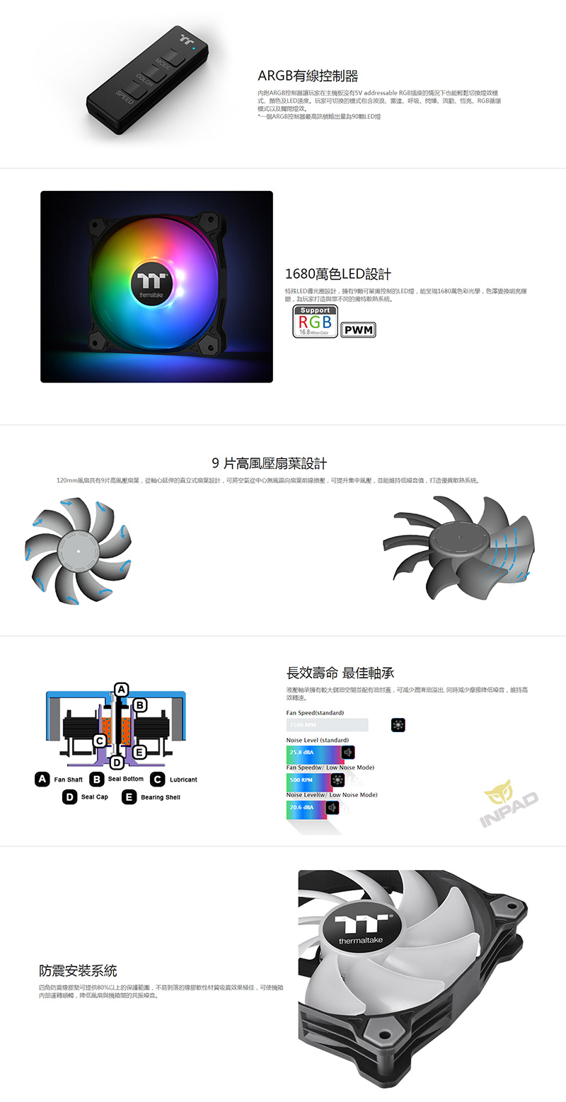 | 品名: | Thermaltake 曜越Pure 12 ARGB Sync 水冷排風扇頂級版(三顆包) |