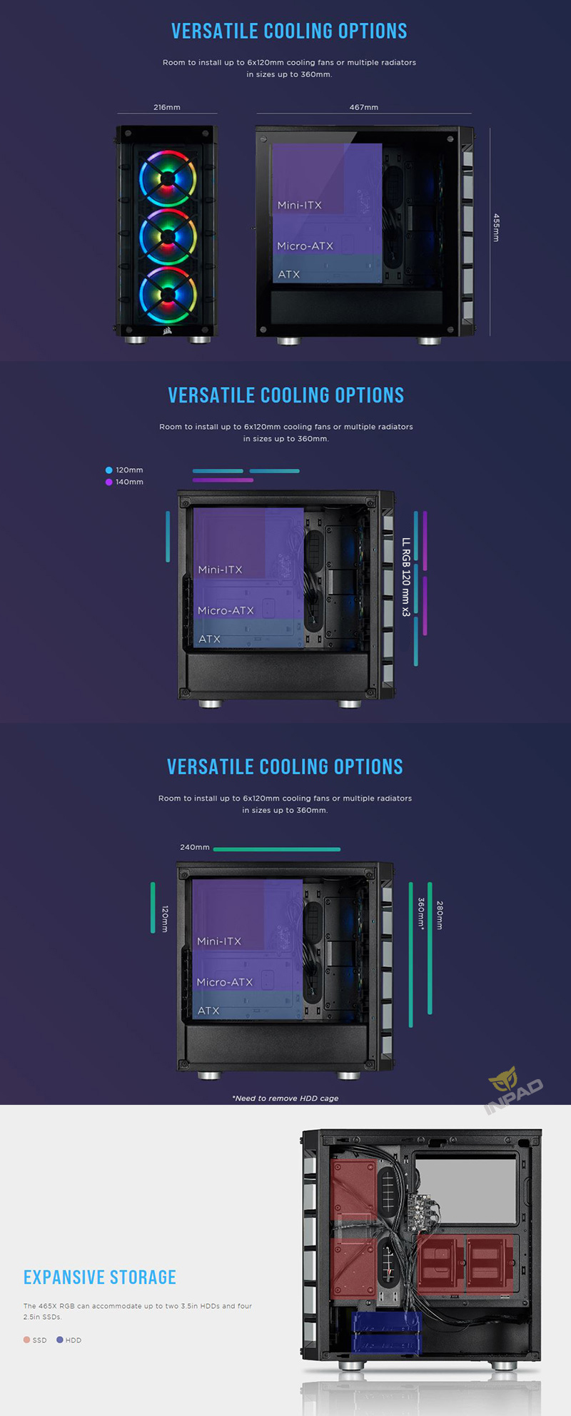 品名: | Corsair 海盜船 iCUE 465X RGB 鋼化玻璃透側機殼 |
