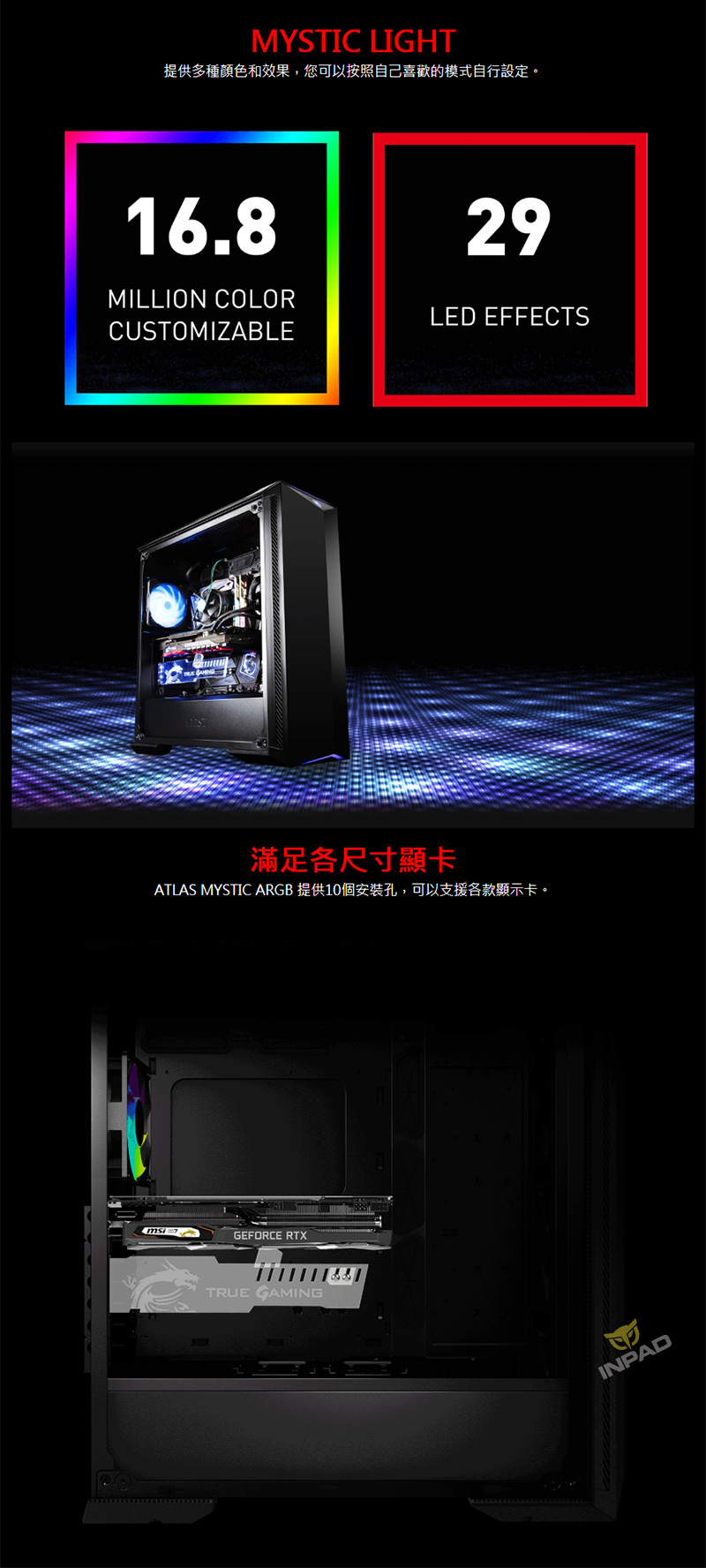 MSI 微星ATLAS MYSTIC ARGB 顯卡支撐架 【商品特色】 1、滿足各種尺寸顯卡