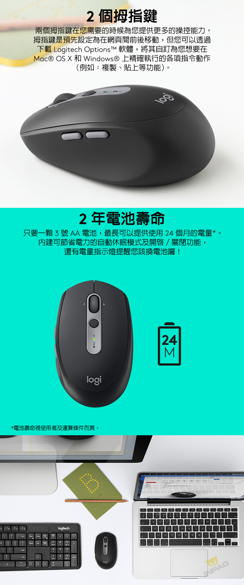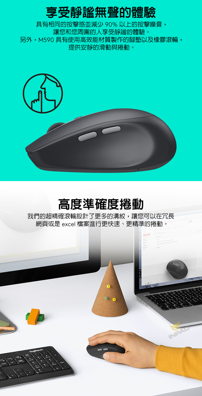 | 品名: | Logitech 羅技 M590 靜音無線滑鼠 |