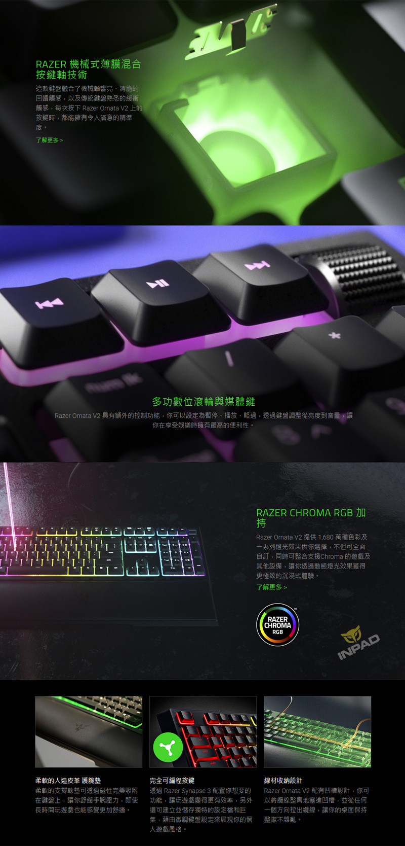 | 品名: | Razer 雷蛇 Ornata V2 雨林狼蛛 類機械 薄膜式鍵盤 |