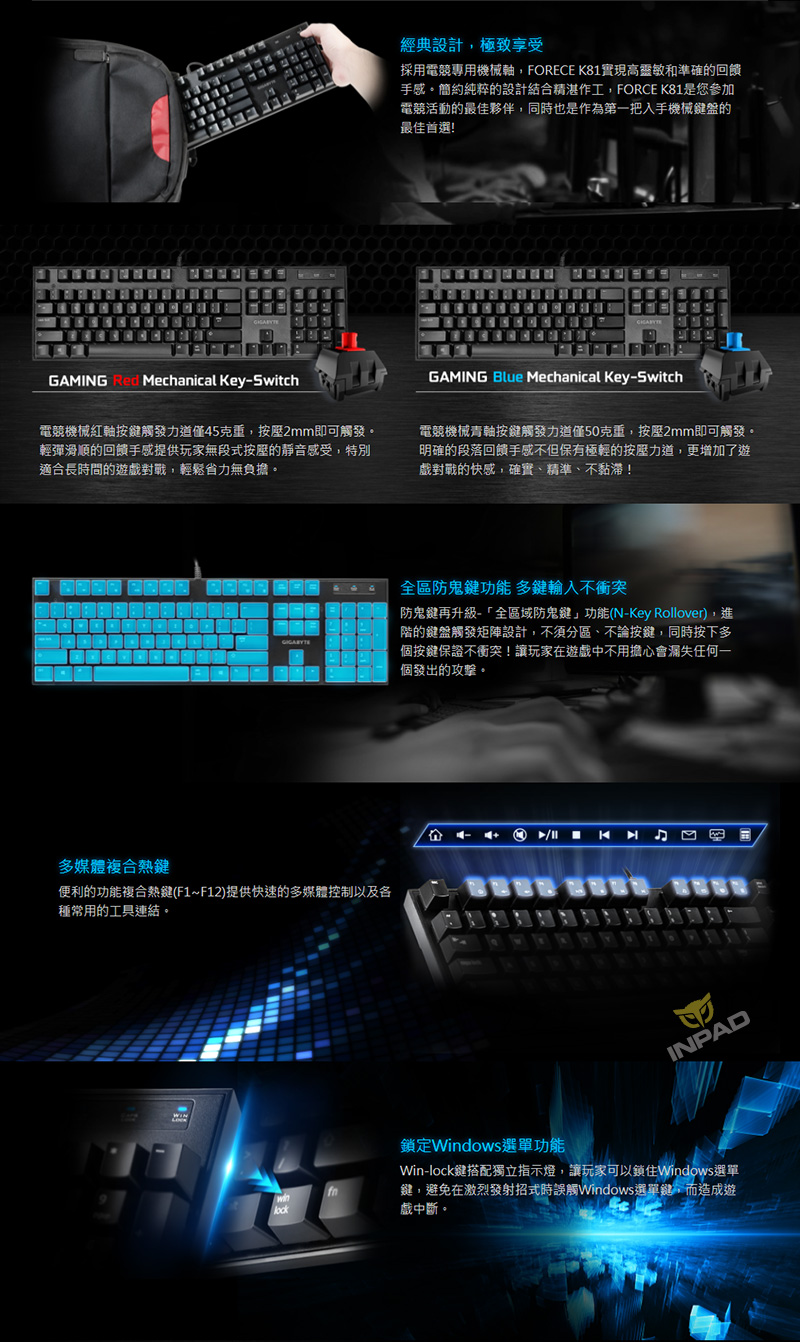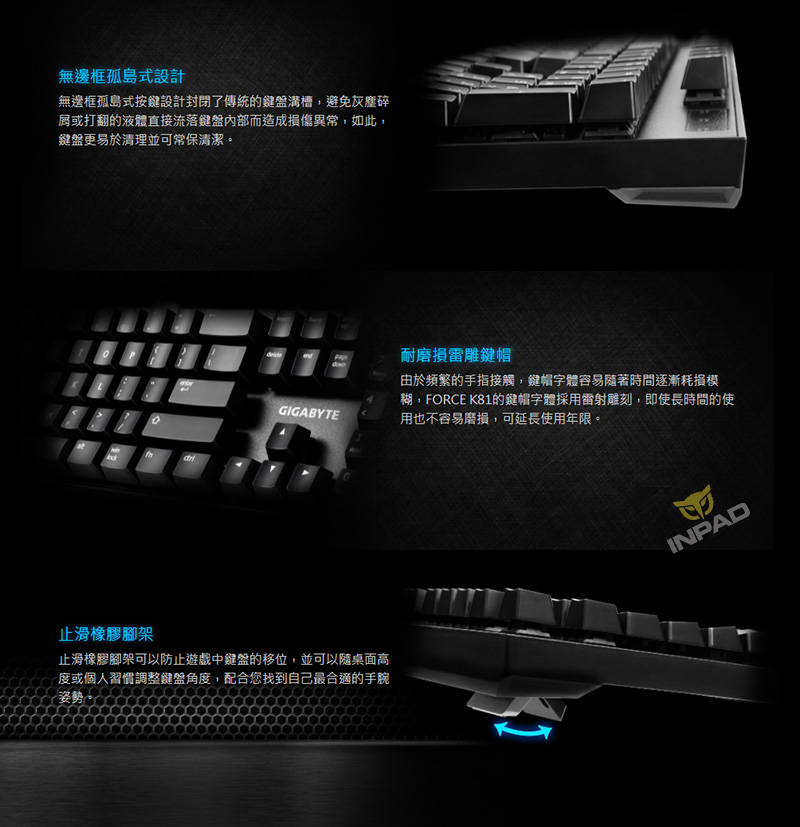 | 品名: | Gigabyte 技嘉 FORCE K81 機械式鍵盤 |