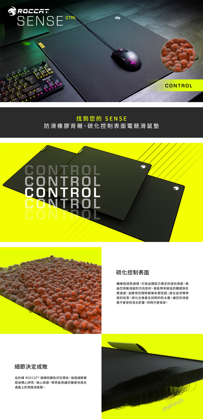 ROCCAT Sense CTRL 控制型 布質滑鼠墊 SQ小 XL大