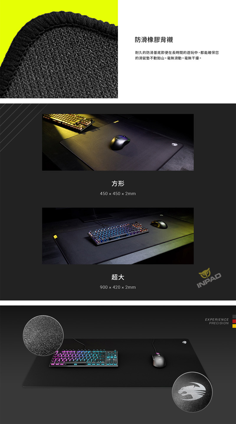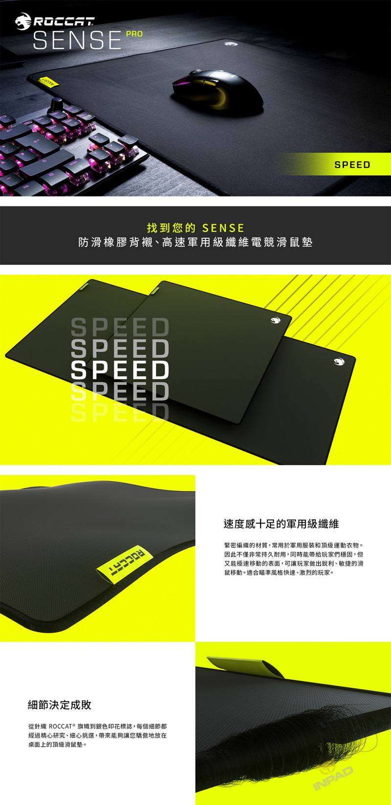 ROCCAT Sense PRO 速度型 布質滑鼠墊 SQ小 XL大