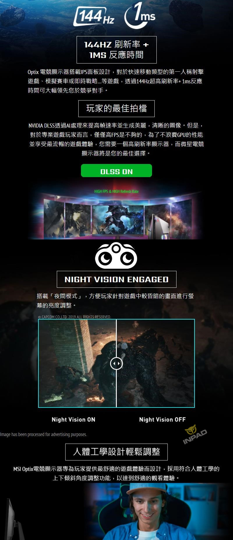 | 備註: | Display Port: 1920 x 1080 (Up to 144 Hz) HDMI: 1920 x 1080 (Up to 144 Hz) DCI-P3 and sRGB follow CIE1976 Standard |